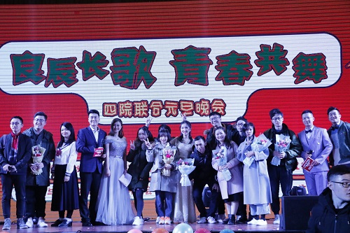 党委副书记易洪波、外国语学院党委副书记李世勇、新影院党委书记胡建国,辅导员老师以及各兄弟院系研究生会主席代表观看了这场青春的盛宴。四院师生欢聚一堂,共庆新年,用歌声和舞蹈来勾勒美好的未来。