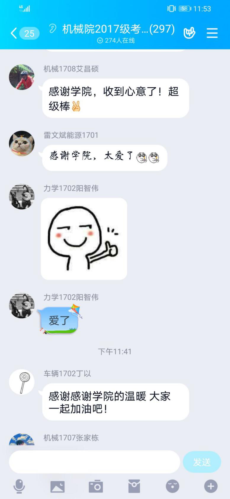 收到学院的暖心礼品后,同学们纷纷在社交网络上发表对学院关怀的感谢,表示学院此举让自己备受鼓舞,真切地感受到来自机械院这个大家庭的温暖与支持。