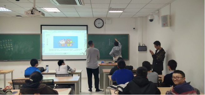 接下来,同学们进行了生动有趣的你画我猜游戏,各组队员依次上场,画画的同学手脚并用,绞尽脑汁地提示猜词语的同学,猜词语的同学也是疯狂的搜索自己头脑里面的词语。这场生动有趣的游戏不仅给大家带来了无限的欢乐,还发掘出了许多绘画"天才"。