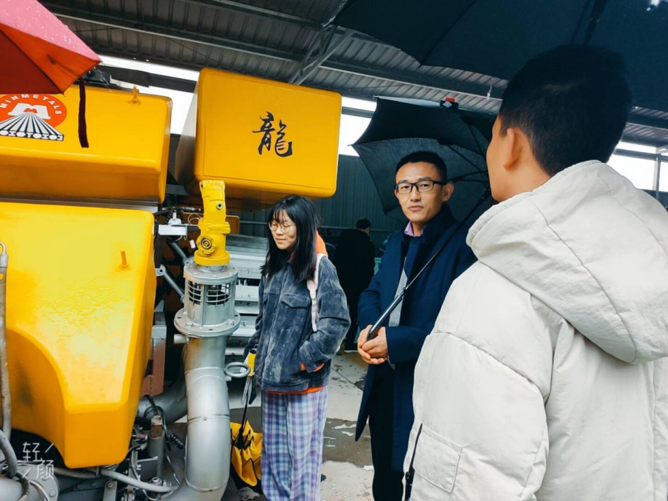 这之后便是激动人心的室外参观环节。冒着雨,我们有幸见识到了退役的输送设备与采收设备,沉寂的表面下埋藏的是磅礴的伟力,它们是中国人智慧与毅力的结晶。