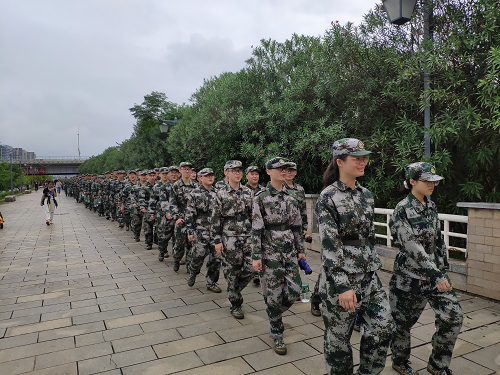 9月20日上午,机械院全体新生沿湘江西岸展开了全程16公里的拉练。
