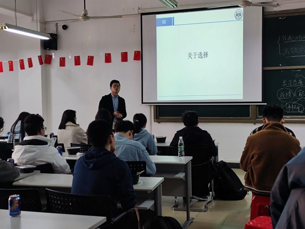 祝晓龙学长引用最近两会习近平总书记的话,从宏观的角度告诉我们要在本科阶段打好基础打牢基础思维层次不能只限于目前课程学习上,而是要将视野放长远,面向国家、社会的重大需求。同时,他通过自己本科时的例子跟我们说明了做好计划的重要性,要把每一件事都做深做透,切忌广而不精,泛而不深。最后,他送给我们一句祝愿:“脚踏实地,仰望星空。”