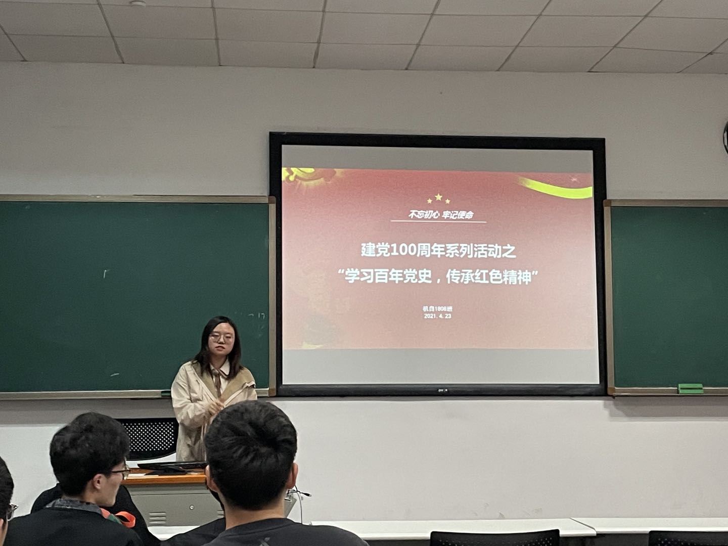 机自1808班于4月23日晚七点举行了一次班会活动,以准备迎接建党100周年,学习党史和党的伟大精神。