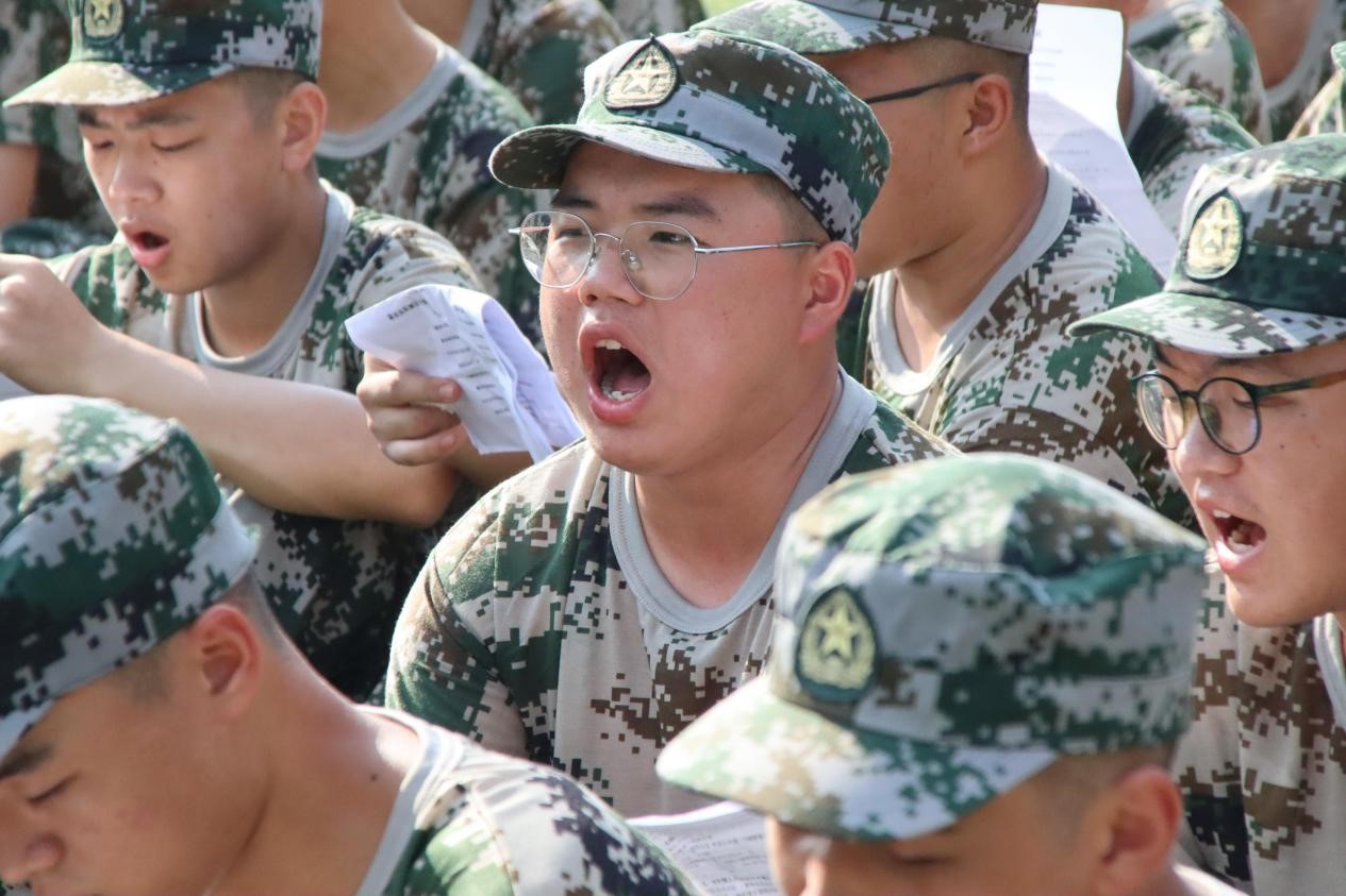 在军训休息期间,同学们积极展现自己的风采,勇敢表现自己的特长,活跃了班级的气氛,缓解了训练的疲惫。