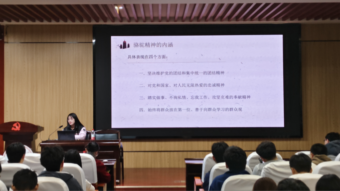 首场党课由湖南大学博士理论宣讲团的张嘉怡、彭祎两位主讲。张嘉怡以"党和人民的骆驼——任弼时"为主题,深入阐释了骆驼精神的深刻内涵及其时代意义。彭祎则以"农民运动中的毛泽东"为题,结合《湖南农民运动考察报告》,带领学员领会"实事求是"的建党精神。