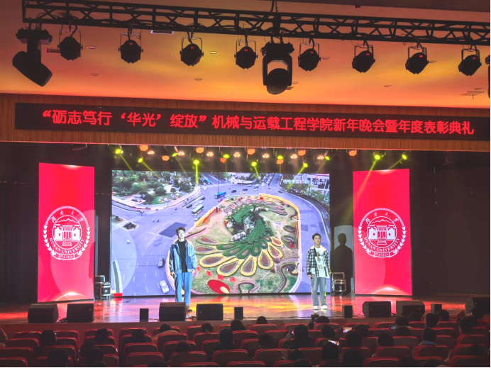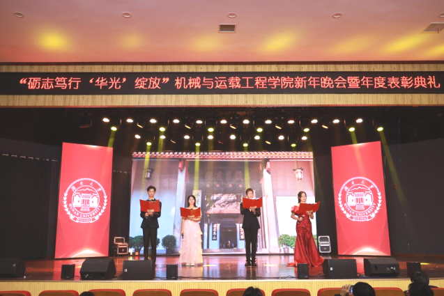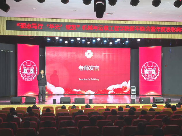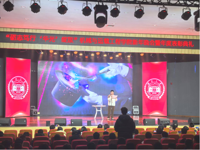 举行新年晚会暨年度表彰典礼。学院党委书记刘喜东,党委副书记刘明然,副院长李伟、任毅如,华光新材研究院副院长黄世盛,楚天科技公司人力资源经理唐美强,以及机械学院24级本科生班主任、任课教师、辅导员、行政教师代表等出席典礼。