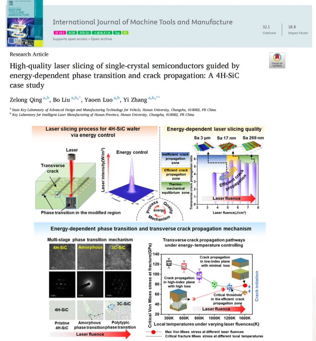 研究成果以“High-quality laser slicing of single-crystal semiconductors guided by energy-dependent phase transition and crack propagation: A 4H-SiC case study”为题发表在机械制造权威学术期刊《国际机床与制造杂志》(International Journal of Machine Tools and Manufacture)2026年第215卷上。新葡京娱乐场-新葡京娱乐场app